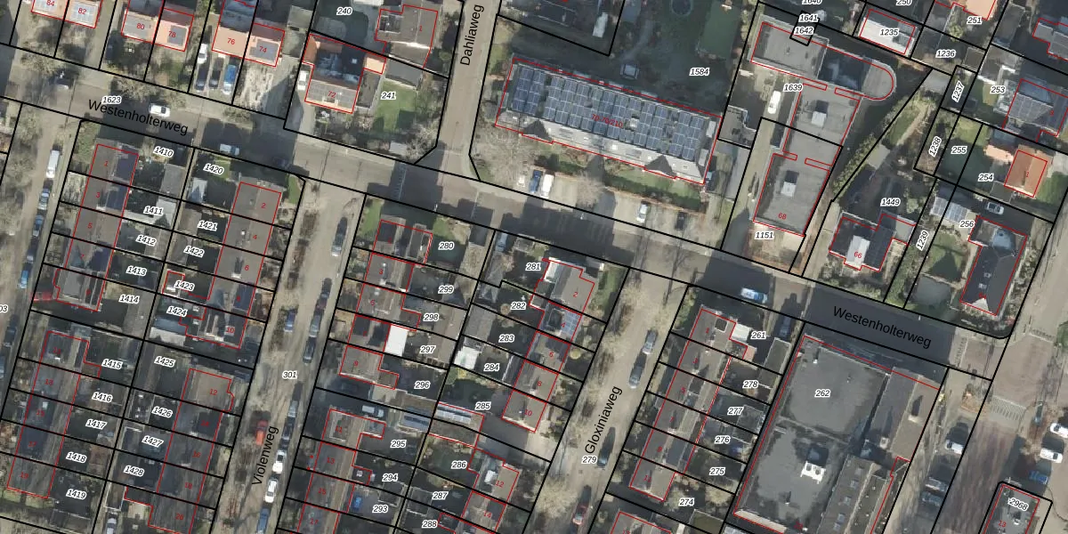 Gebruik de zoekbalk of klik op een perceel om informatie over het perceel te bekijken.