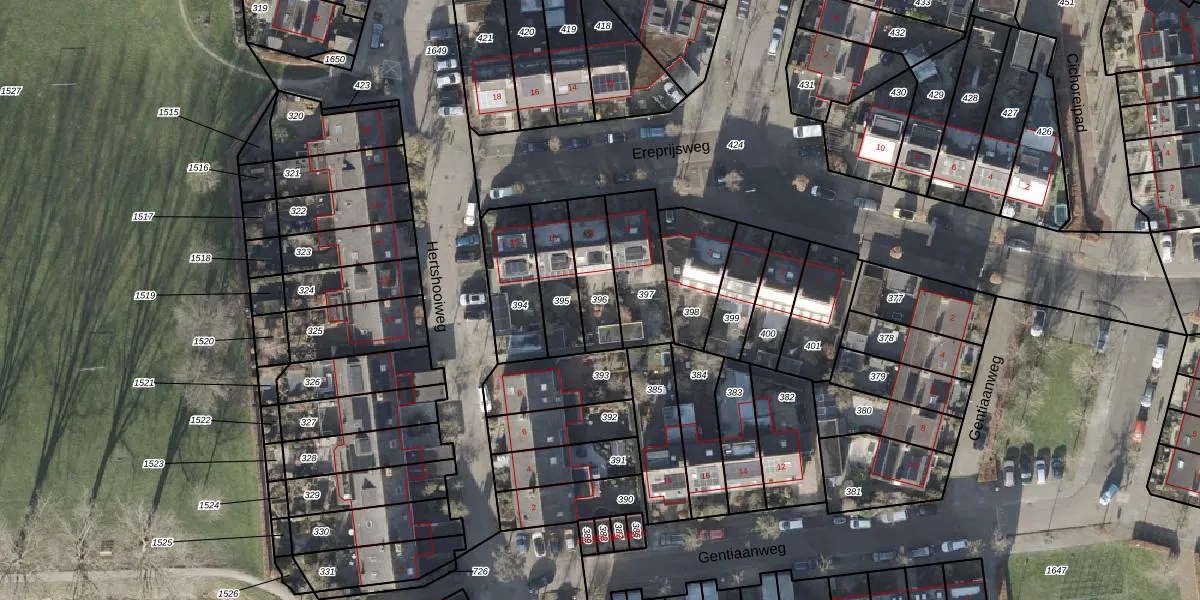 Gebruik de zoekbalk of klik op een perceel om informatie over het perceel te bekijken.