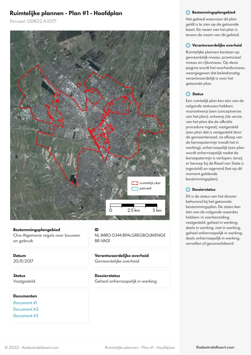 Indien er voor uw perceel digitaal gepubliceerde gemeentelijke bestemmingsplannen aanwezig zijn, ontvangt u tevens: