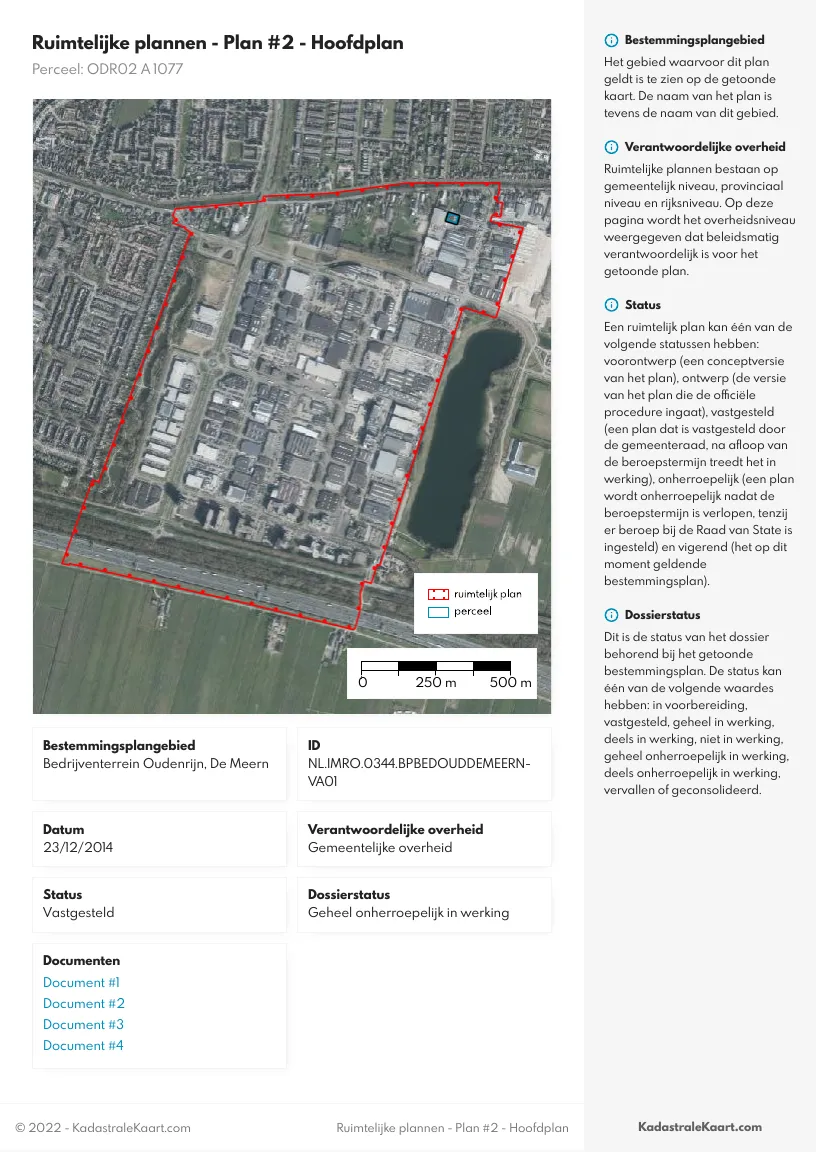 Indien het bestemmingsplan voor uw perceel digitaal gepubliceerd is, ontvangt u een verwijzing naar het hoofdplan en eventuele subplannen.